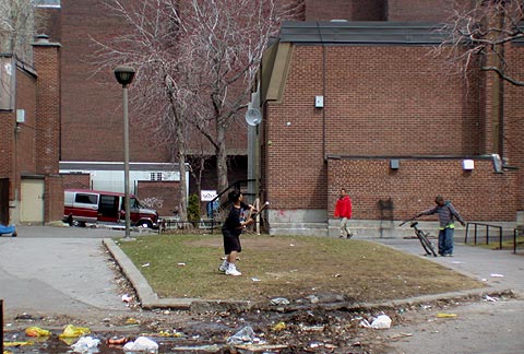 Terre-plein gazonné de la terrasse Elgin dans un complexe d'habitation de la Petite Bourgogne entre les rues Saint-Martin et Richmond / Grass area on the Elgin terrace in a Petite Bourgogne housing complex (between Saint-Martin and Richmond streets)